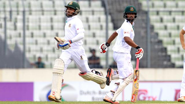মুশফিক আউটের পর দিনটা নিরাপদে পার করে দিয়েছেন তামিম-মুমিনুল। দুজনের অবিচ্ছিন্ন চতুর্থ উইকেট জুটি যোগ করেছে ২৪ রান। ওপেন করতে নামেননি, তাতে কী! কাল তৃতীয় দিনের শুরুতে তামিম ওপেনিংয়ের স্বাদ পাবেন! দ্বিতীয় দিনের শেষ বলে ডাউন দ্য উইকেটে ছক্কা মেরে বার্তাটাও দিয়ে রেখেছেন।
