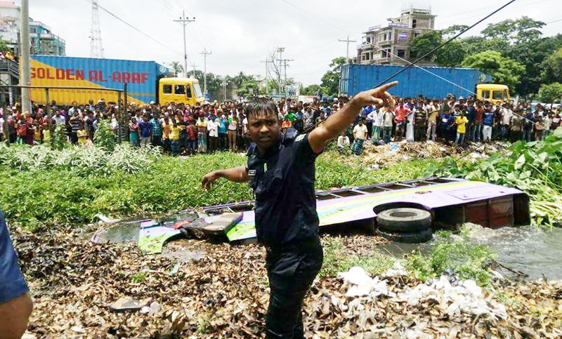 পরে পুলিশ পারভেজ মিয়া একাই পানিতে নেমে পড়েন। তিনি একটি গ্লাস ভেঙ্গে প্রথমে সাত মাসের একটি শিশুকে বের করেন। তিনি যখন এক এক করে নারী যাত্রীদের করছেন তখন শতশত জনতা দর্শকের মত তাকিয়ে ছিল। কেউ তাদেরকে উদ্ধার করতে আসেনি। এরপর এক এক করে ১২ জন নারী যাত্রী ২৭ জন পুরুষ যাত্রীদের উদ্ধার করার সময় হাইওয়ে পুলিশ ও ফায়ার সার্ভিস এসে গাড়িটি উদ্ধার করা হয়।