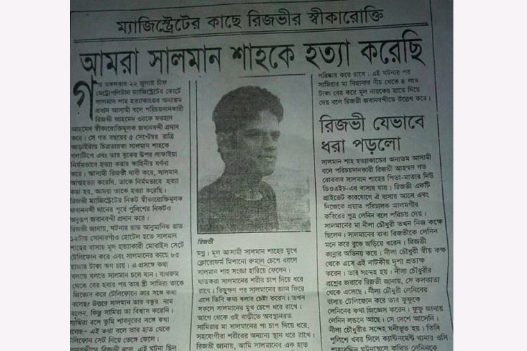 সালমান হত্যার ঘটনায় সংগ্রহ করা বিভিন্ন আলামতও এখন নেটদুনিয়ায় ভাইরাল। সালমানকে যে সিলিং ফ্যানে ঝুলন্ত অবস্থায় পাওয়া গিয়েছিল সেটির ছবি, ফাঁসির দড়ি ও অন্যান্য আলামতের ছবিও ভাইরাল হয়েছে। আলামতের পর এবার ভাইরাল হয়েছে সালমান হত্যা মামলার আরেক আসামি রিজভীর জবানবন্দী।