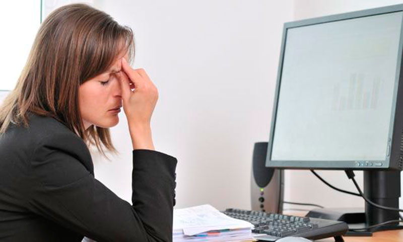 অফিসে অপর্যাপ্ত আলো, স্ক্রিনের আলো এবং সঠিকভাবে না বসার কারণে এই সমস্যা বাড়তে পারে। এর থেকে শুষ্ক চোখের সমস্যাও হতে পারে। সাধারণ সময়ে আমরা যতবার চোখের পাতা ফেলি, স্ক্রিনের সামনে তার ৬৬ শতাংশ কম ফেলি। এ কারণে চোখ শুষ্ক হয়ে যায়, জানা যায় ইউনিভার্সিটি অফ আইওয়া হেলথ কেয়ারের রিপোর্ট থেকে।