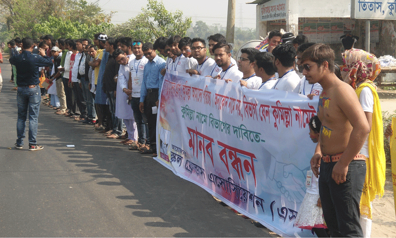 কুমিল্লা নামে বিভাগের দাবিতে তিতাসে মানববন্ধন