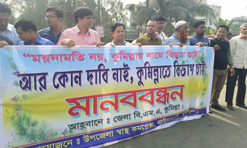 কুমিল্লা নামে বিভাগের দাবিতে মানববন্ধন