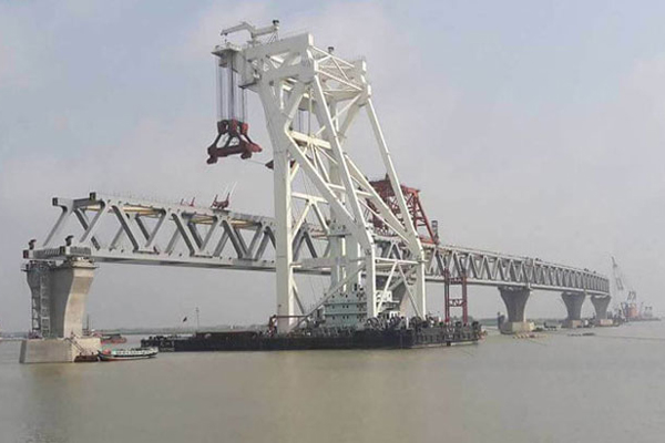 পদ্মা সেতুর ৪র্থ স্প্যান খুঁটিতে বসানো হয়েছে, সেতুর ৬০০ মিটার দৃশ্যমান
