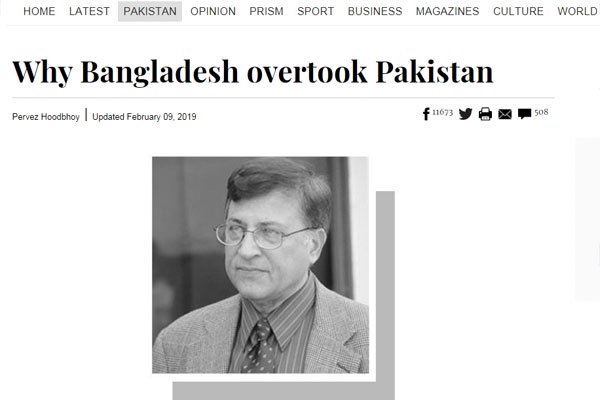 পাকিস্তানের চেয়ে বাংলাদেশ কেন এগিয়ে তার কারণ ব্যাখ্যা করে ‘দ্য ডন’- এ ৯ ফেব্রুয়ারি উপসম্পাকীয় লিখেছেন পাকিস্তানের পদার্থবিদ পারভেজ হুদবয়।