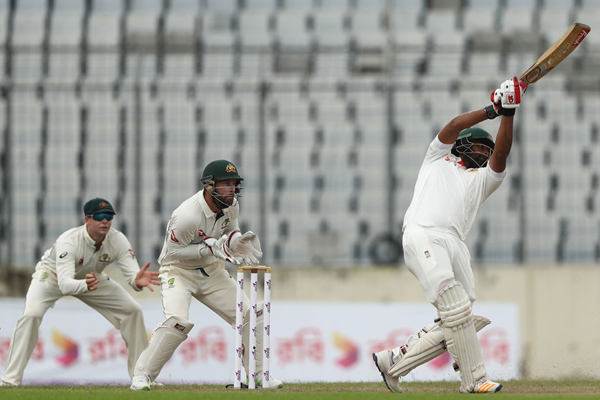 অস্ট্রেলিয়ার বিপক্ষে ঢাকা টেস্টে তৃতীয় দিনের ব্যাটিংয়ে নেমে অপ্রতিরোধ্য টাইগার ওপেনার তামিম ইকবাল। প্রথম ওভারে দু’টি বাউন্ডারি দিয়ে খেলা শুরু করেন তিনি।