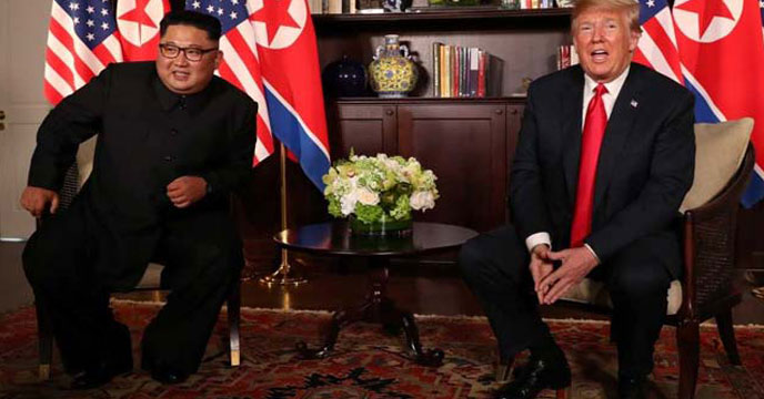 যুক্তরাষ্ট্রের প্রেসিডেন্ট ডোনাল্ড ট্রাম্প ও উত্তর কোরিয়ার সর্বোচ্চ নেতা কিম জং উন বৈঠকে বসেছেন
