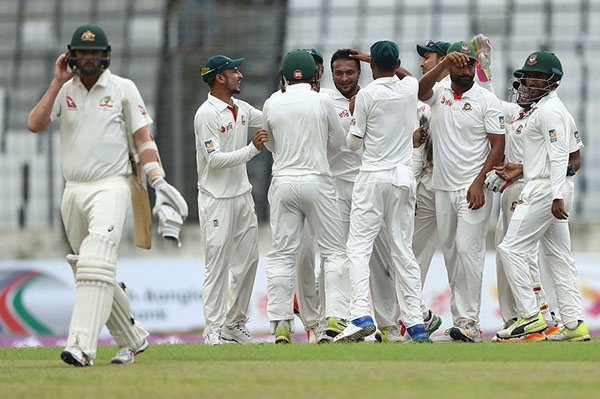 এর আগে, বাংলাদেশের প্রথম ইনিংসে ২৫০ রানের জবাবে রবিবার ব্যাটিংয়ে নেমে দলীয় ১৪ রানের মধ্যে অস্ট্রেলিয়ার ৩ ব্যাটসম্যানকে সাজঘরে পাঠিয়ে বিকালটা নিজেদের করে নেন টাইগাররা।