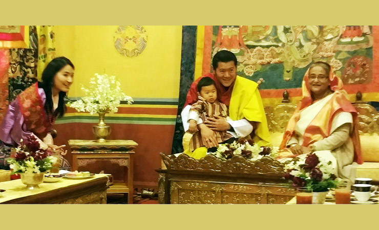 প্রধানমন্ত্রী শেখ হাসিনাকে তার পুত্রের ‘দাদি’ বলে উল্লেখ করেছেন ভুটানের রাজা জিগমে খেসার ন্যামগিল ওয়াংচুক। এ সময় প্রধানমন্ত্রী ১৪ মাস বয়সী শিশুটিকে কোলে নিয়ে আদর করেন।