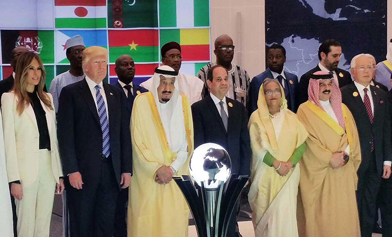 সৌদি বাদশা সালমান বিন আবদুল আজিজ আল সউদের আমন্ত্রণে চার দিনের সরকারি সফরে প্রধানমন্ত্রী শেখ হাসিনা এই সম্মেলনে যোগ দিয়েছেন। এতে যুক্তরাষ্ট্রের প্রেসিডেন্ট ডোনাল্ড ট্রাম্প এবং ৫৬ আরব ও মুসলিম দেশের নেতারা যোগ দিয়েছেন। শেখ হাসিনা ও ডোনাল্ড ট্রাম্পের মধ্যে এবারই প্রথম সাক্ষাত হয়েছে। মার্কিন প্রেসিডেন্ট হিসেবে নির্বাচিত হওয়ার পর ডোনাল্ড ট্রাম্পের এটাই প্রথম বিদেশ সফর।