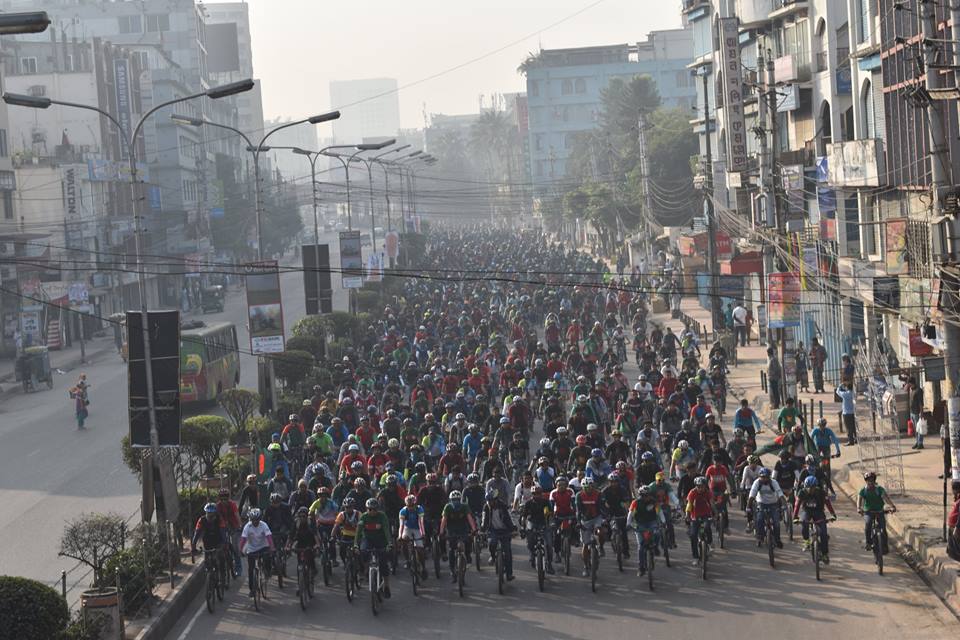 মহান বিজয় দিবস উপলক্ষ্যে ‘বিডি সাইক্লিস্ট’ এর আয়োজনে রাজধানীতে হয়ে গেলো এক বিজয় র্যালী। দেশের ইতিহাসের সর্ব বৃহৎ এই সাইকেল র্যালিতে অংশ নেয় প্রায় ৭ হাজার সাইক্লিস্ট। বিজয়ের চেতনাকে কাজে লাগিয়ে নতুন স্বদেশ গড়ার অঙ্গিকার র্যালিতে অংশগ্রহণকারীদের কন্ঠে। শীতের রুক্ষতাকে পাশ কাটিয়ে তখনও ইট পাথরের ঢাকা শহরে পুরোপুরি সূর্যের আলো এসে পৌঁছায় নি। হয়তো ভাঙেনি ব্যস্ত নগরবাসীর ঘুম। আর তখন-ই সাইকেল নিয়ে ঢাকার রাজপথ দাঁপিয়ে বেড়াচ্ছেন একদল সাইক্লিস্ট।
