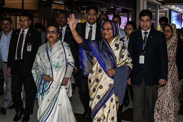 সোমবার সকাল ১০টা ৪৮ মিনিটে প্রধানমন্ত্রী ও তার সফর সঙ্গীদের বহনকারী বাংলাদেশ বিমানের ভিভিআইপি ফ্লাইটটি হযরত শাহজালাল আন্তর্জাতিক বিমানবন্দরে অবতরণ করে। এ সময় মস্ত্রিপরিষদ সদস্য, তিন বাহিনীর উচ্চপদস্থ কর্মকর্তাগণ উপস্থিত ছিলেন।