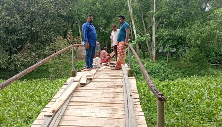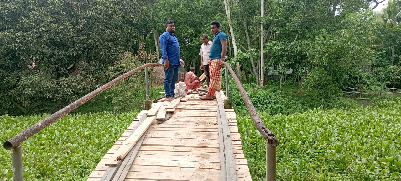 দাউদকান্দি উপজেলায় গ্রামীন অবকাঠামো রক্ষণাবেক্ষণ প্রকল্পে লাঘব হচ্ছে জনগণের দীর্ঘদিনের ভোগান্তি। কুমিল্লা-আসনের সংসদ সদস্য ও প্রতিরক্ষা মন্ত্রণালয় সম্পর্কিত সংসদীয় স্থায়ী কমিটির সভাপতি বীর মুক্তিযোদ্ধা মেজর জেনারেল সুবিদ আলী ভূঁইয়ার বিশেষ বরাদ্দ(টিআর)এর আওতায় বদলে যাচ্ছে দাউদকান্দি উপজেলার অবহেলিত গ্রামীণ অবকাঠামো গুলো। ছবিতে দেখা যাচ্ছে উপজেলার জিংলাতলী গ্রামের পশ্চিম সাহাপাড়ায় জণগণের যাতায়াতে বহুল ব্যবহৃত আরসিসি ধারা নির্মিত কাঠের ব্রিজের পুরাতন কাঠগুলো পরিবর্তন করে নতুন কাঠ বসানো হচ্ছে। ব্রিজটির পুরাতন কাঠগুলো পচে নষ্ট হয়ে যাওয়ায় দীর্ঘদিন যাবত স্থানীয়দের চলাচলে ভোগান্তি সৃষ্টি হত। ছাত্র-ছাত্রীদের বিদ্যালয়ে আসা-যাওয়া ও কৃষি পণ্য বাজারজাত করতে চরম ব্যাঘাত ঘটতো। কখনো কখনো কাঠের পচা অংশে পারা দিয়ে একাধিক শিক্ষার্থী ও বৃদ্ধ ব্রিজ থেকে খালের গভীরে পড়ে যাওয়ার ঘটনা ও ঘটে। জনগণের এই ভোগান্তি লাঘব করতে সাংবাদিক মাসুম বিন ইদ্রিস,স্থানীয় এমপি সুবিদ আলী ভূঁইয়ার বরাবর একটি বরাদ্দের আবেদন করেন। আবেদন অনুযায়ী স্থানীয় এমপি গ্রামীন অবকাঠামো রক্ষণাবেক্ষণের আওতায় বরাদ্দ প্রদান করিলে মঙ্গলবার দিনভর নতুন কাঠ দিয়ে ব্রিজের মেরামত কাজ সম্পন্ন করা হয়। অবহেলিত এই বৃজটি মেরামতে বরাদ্দ প্রদান করায় স্থানীয় বাসিন্দারা সংসদ সদস্যের প্রতি কৃতজ্ঞতা প্রকাশ করে ধন্যবাদ জানান।