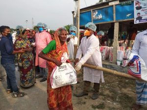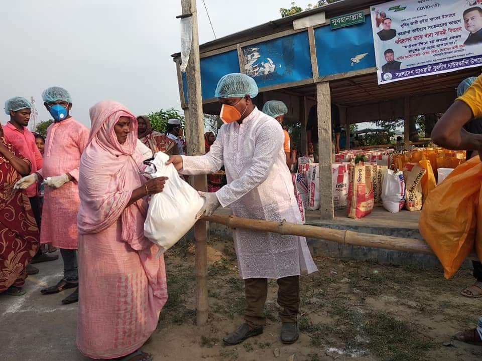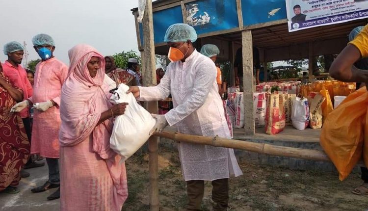 সাংসদ ও উপজেলা চেয়ারম্যানের নির্দেশে যুবলীগ নেতা আলআমিনের নিজ অর্থায়নে কর্মহীনদের মাঝে ত্রাণ বিতরণ