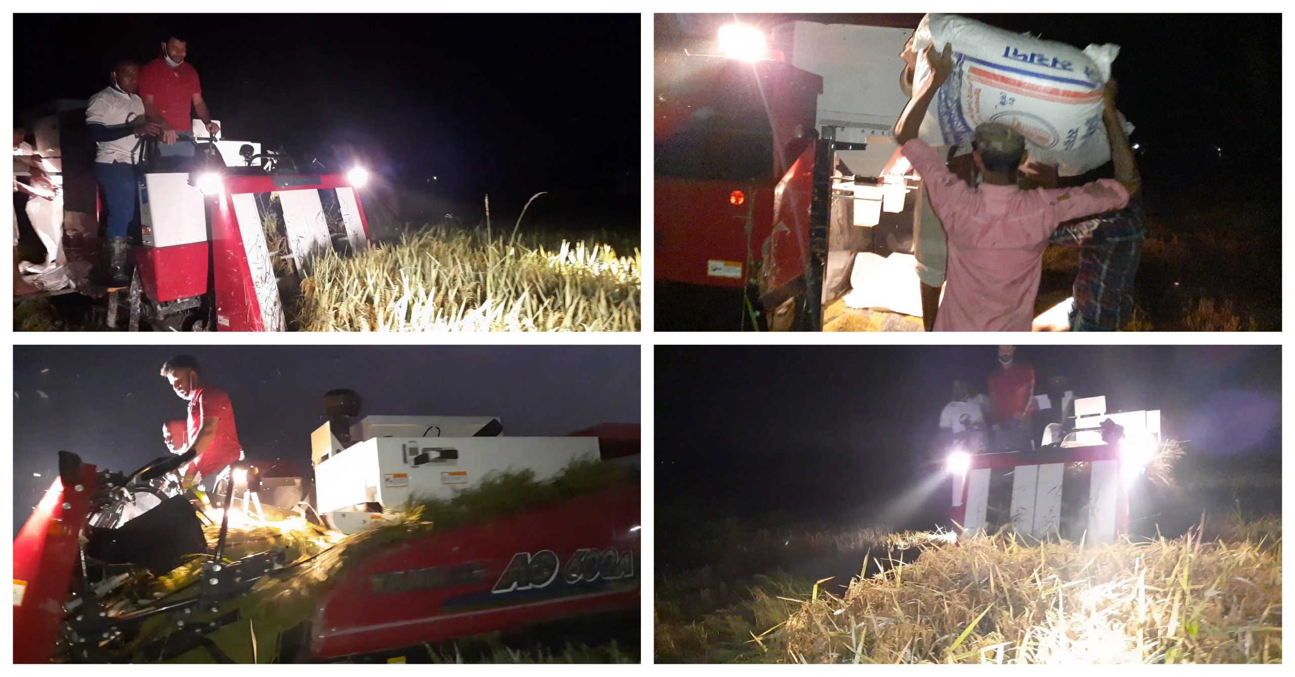 দাউদকান্দি উপজেলা পরিষদ চেয়ারম্যান মেজর মোহাম্মদ আলী নিজস্ব অর্থায়নে, কেনা কম্বাইন হারভেস্টার দিয়ে রাতের আঁধারে ধান কেটে কৃষকের ঘরে তুলে দিল দাউদকান্দি উপজেলা ছাত্রলীগ।