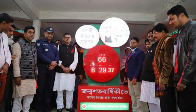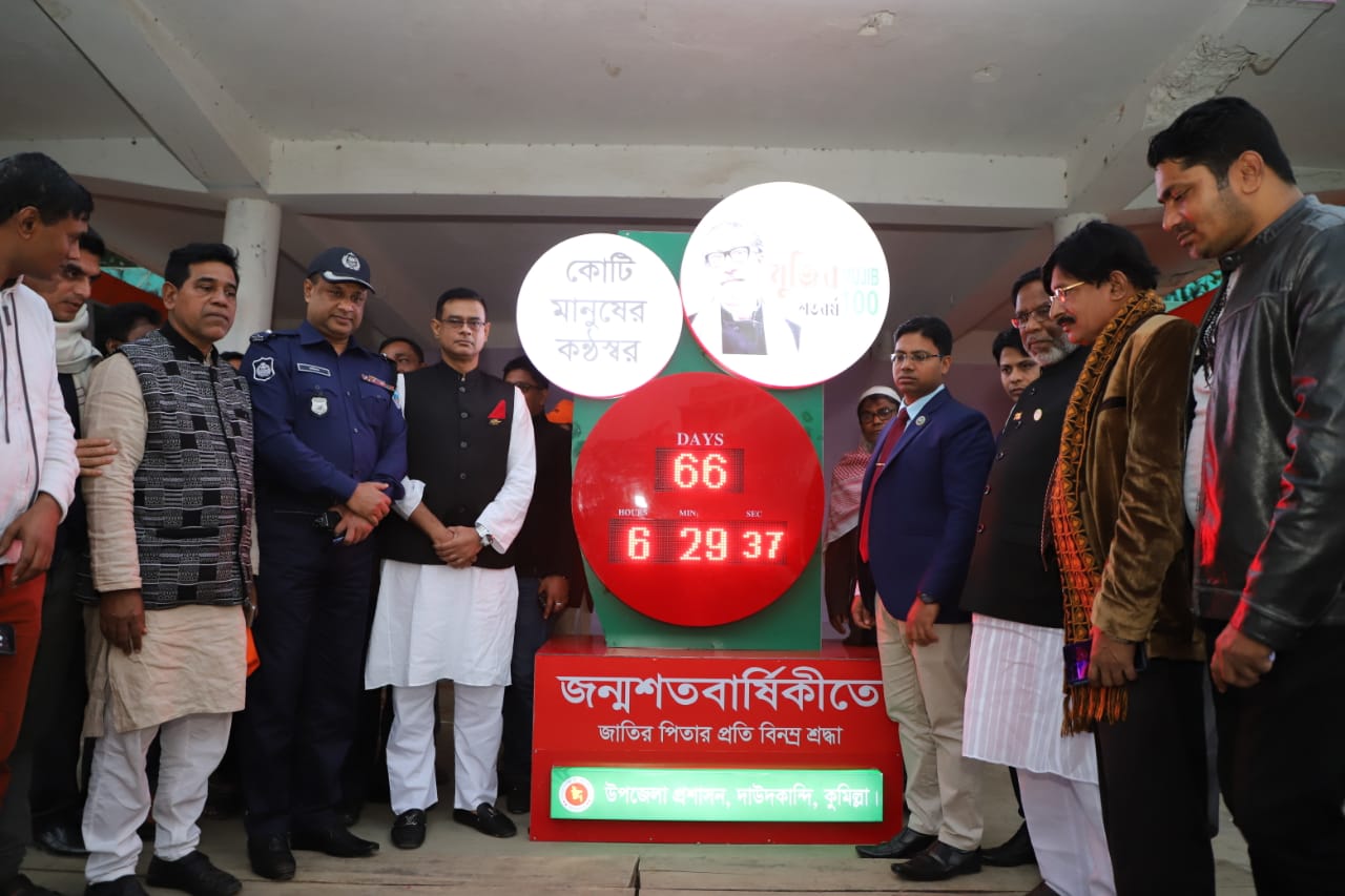 জাতির পিতা ও স্বাধীনতার স্থপতি বঙ্গবন্ধু শেখ মুজিবুর রহমানের জন্মশত বার্ষিকী উদযাপন উপলক্ষে দাউদকান্দিতে ৩টি পয়েন্টে ডিজিটাল ক্ষনগণনা ঘড়ি স্থাপন করেছে উপজেলা প্রশাসন ও উপজেলা পরিষদ।