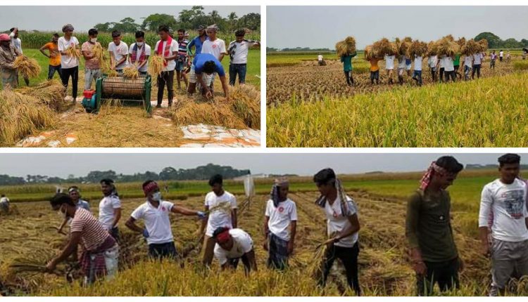 রোজা রেখে,কৃষকের ধান কেটে ঘরে তুলে দিলো দৌলতপুর ইউনিয়ন ছাত্রলীগ