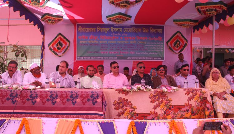 কুমিল্লার দাউদকান্দি উপজেলার পাঁচগাছিয়া ইউনিয়নের শ্রীরায়েরচর সিরাজুল ইসলাম মেমোরিয়াল উচ্চ বিদ্যালয়ের বার্ষিক ক্রীড়া প্রতিযোগিতার পুরস্কার বিতরণী অনুষ্ঠানের প্রধান অতিথির বক্তব্যে তিনি একথা বলেন।