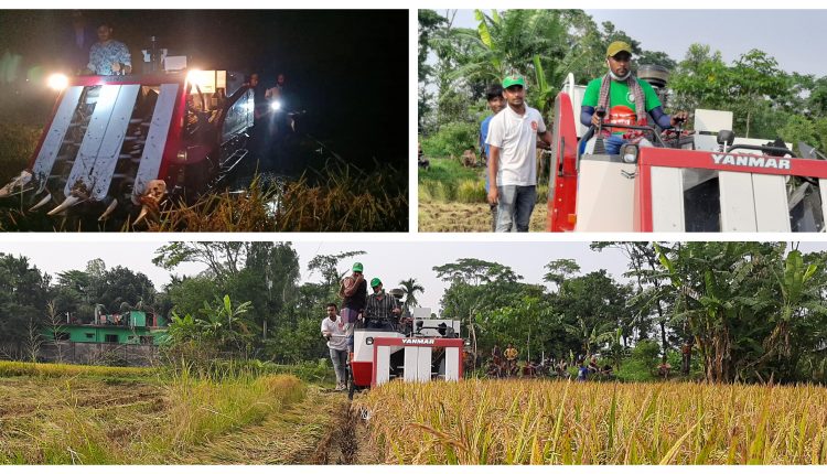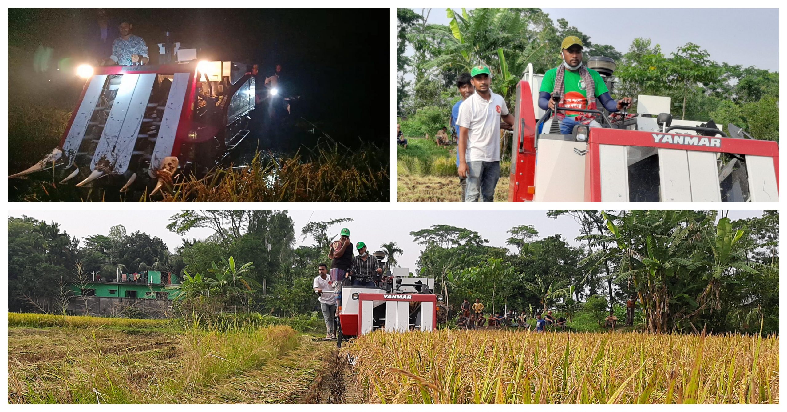 দাউদকান্দি উপজেলা পরিষদ চেয়ারম্যান মেজর(অব.) মোহাম্মদ আলী নিজস্ব অর্থায়নে, কেনা কম্বাইন হারভেস্টার দিয়ে, দাউদকান্দির মারুকা ইউনিয়নের ধান কেটে কৃষকের ঘরে তুলে দিচ্ছে দাউদকান্দি উপজেলা ও মারুকা ইউনিয়ন ছাত্রলীগের নেতাকর্মীরা।