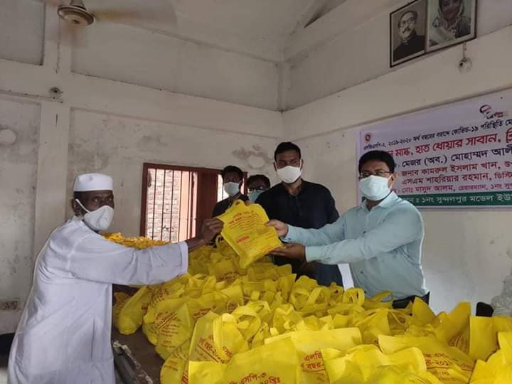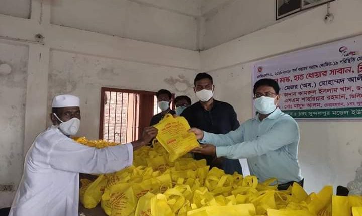 সুন্দলপুর ইউনিয়নে দুইশ পরিবারের মাঝে করোনা প্রতিরোধে সুরক্ষা সামগ্রী বিতরণ