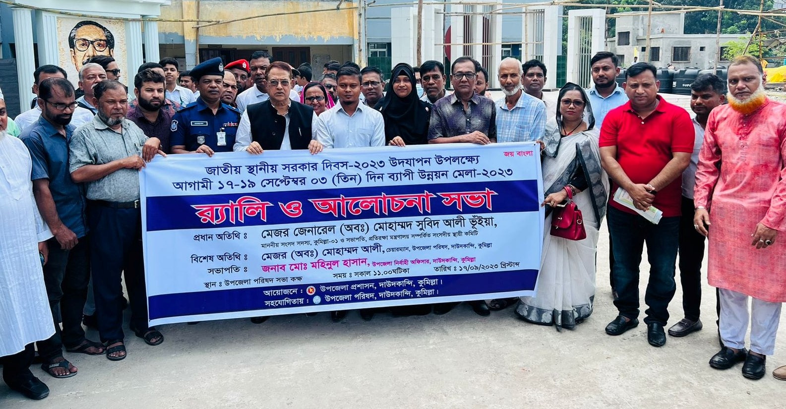 কুমিল্লার দাউদকান্দিতে স্থানীয় সরকার দিবস ২০২৩ উপলক্ষে বিভিন্ন কর্মসূচি উদযাপিত হচ্ছে। উপজেলা প্রশাসন আয়োজিত বিভিন্ন কর্মসূচির মধ্যে রয়েছে আলোচনা সভা, র্যালি ও তিন দিনব্যাপী ডিজিটাল মেলা।