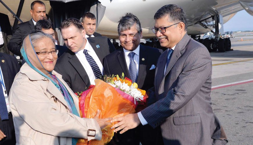 জাতিসংঘের ৭২তম অধিবেশনে যোগ দিতে নিউইয়র্কে পৌঁছালেন প্রধানমন্ত্রী শেখ হাসিনা