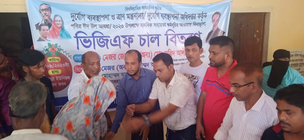 কুমিল্লার দাউদকান্দি উপজেলার বারপাড়া ইউনিয়নে দুর্যোগ ব্যবস্থাপনা ও ত্রাণ মন্ত্রনালয়/ দুর্যোগ ব্যবস্থাপনা অধিদপ্তর কর্তৃক পবিত্র ঈদ উল আযহা-২০২৩ উপলক্ষে মানবিক সহায়তা কর্মসূচির আওতায় বিনামূল্যে গরীব,অসহায় ও দুস্থদের মাঝে বিজিএফ’র চাল বিতরণ করা হয়েছে।