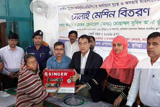 ২০ সেপ্টেম্বর ২০১৭ইং তারিখ বুধবার বেলা ১১টায় দাউদকান্দি উপজেলা প্রশাসন কর্তৃক আয়োজিত, উপজেলা পরিষদ মিলনায়তনে কুমিল্লা-১ আসনের মাননীয় সংসদ সদস্য মেজর জেনারেল (অবঃ) মোঃ সুবিদ আলী ভূঁইয়া এমপি নিজ স্বেচ্ছাধীন তহবিল হতে অসহায় ও দুঃস্থ পরিবারের মাঝে নগদ অর্থ বিতরন করেছেন। এর সাথে সাথে “কর্মজীবী ল্যাকটেটিং মাদার সহায়তা তহবিল কর্মসূচির” আওতায় ২০১৬-২০১৭ অর্থ বছরে দাউদকান্দি পৌরসভার উপকারভোগীদের স্বাস্থ্য সেবা জোরদার কারার লক্ষ্যে দুঃস্থ ও অসহায় লোকদের মাঝে মাতৃত্বকালীন ভাতা কার্ড ও অর্থ বিতরণ করেন।