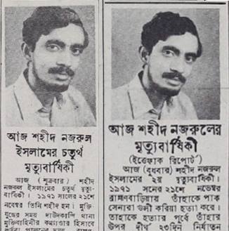 ১৯৭২ সালের ২১ নভেম্বর দৈনিক ইত্তেফাকে প্রকাশিত প্রতিবেদনের শিরোনাম ছিল : ‘গত বৎসর এই দিনে নজরুল শহীদ হইয়াছিলেন’।