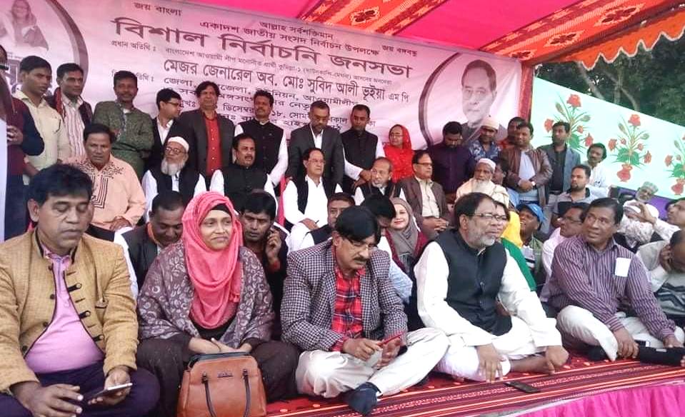 একাদশ জাতীয় সংসদ নির্বাচনে কুমিল্লা-১ (দাউদকান্দি ও মেঘনা) আসনে আওয়ামী লীগের মনোনীত প্রার্থী মেজর জেনারেল (অব.) মো. সুবিদ আলী ভূঁইয়াকে টানা তৃতীয়বারের মত বিজয়ী করতে আবারো একমঞ্চে এক্যবদ্ধ হয়েছেন দলের বড় নেতারা। ২৪ ডিসেম্বর, সোমবার বিকেলে দাউদকান্দির রায়পুর হাইস্কুল মাঠে এক বিশাল নির্বাচনী জনসভায় কেন্দ্রীয় ও জেলার শীর্ষনেতারা একমঞ্চে উঠে নৌকাকে বিজয়ী করতে প্রত্যয় ব্যক্ত করেন।