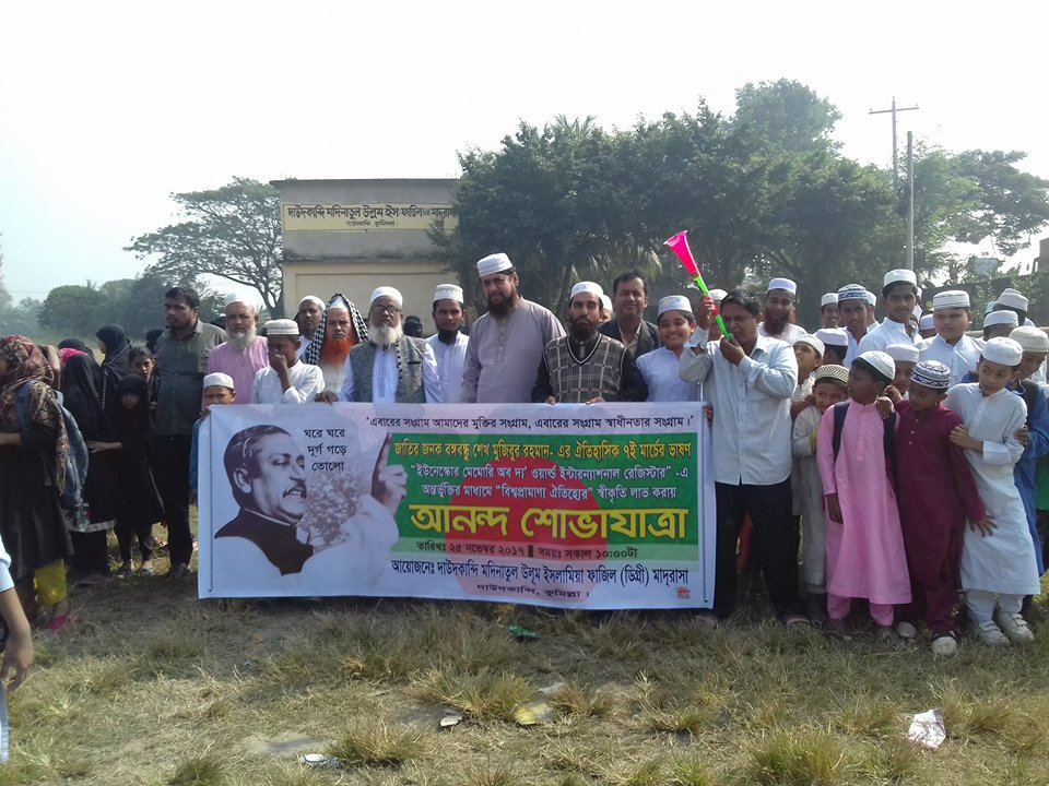 জাতির পিতা বঙ্গবন্ধু শেখ মুজিবর রহমান এর ৭ই মার্চের ঐতিহাসিক ভাষণ ইউনেস্কোর “মেমোরি অব দ্যা ওয়ার্ল্ড ইন্টারন্যাশনাল রেজিস্ট্রার”-এ অন্তর্ভূক্তির মাধ্যমে “বিশ্বপ্রামাণ্য ঐতিহ্য” হিসেবে স্বীকৃতি লাভ করায়, কুমিল্লার দাউদকান্দির দাউদকান্দি মদিনাতুল উলুম ফাযিল মাদ্রাসায় আনন্দ শোভাযাত্রাসহ নানা কর্মসূচি উদযাপিত হয়েছে।