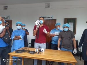 শ্রমিকলীগ নেতা বিল্লাল মুন্সীর উদ্যোগে ত্রাণ বিতরণ কার্যক্রমে বক্তব্য রাখছে মেজর মোহাম্মদ আলী (অব.)