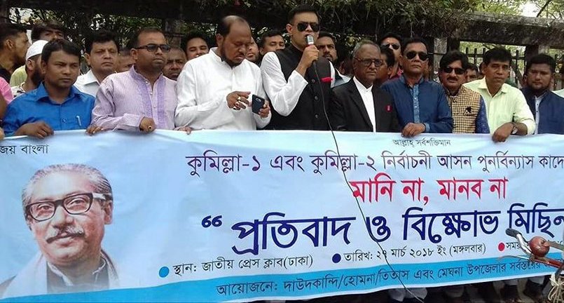 ইসি’র সংসদীয় আসন পুনর্গঠনের খসড়ায় কুমিল্লা-১ ও ২ আসনের সীমানা পরিবর্তনের প্রতিবাদে মঙ্গলবার বেলা ১১টায় জাতীয় প্রেসক্লাবের সামনে মানববন্ধন কর্মসূচি ও প্রতিবাদ সভার বক্তব্যে তিনি এ দাবি জানান।