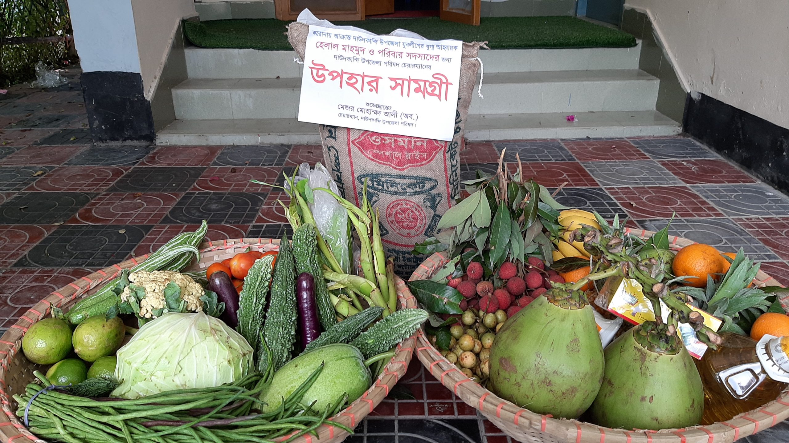 (১৪ জুন,২০২০,) শনিবার, সকালে দাউদকান্দি পৌরসভার ভূঁইয়া প্লাজায়, করোনা আক্রান্ত যুবলীগ নেতা হেলাল মাহমুদের বাসায় উপজেলা চেয়ারম্যানের নির্দেশে, ও ইতালী প্রবাসী ও মুক্তিযোদ্ধা সন্তান মোমেন খান এর সহযোগিতায়, হোম কোয়ারেন্টাইনে থাকা পরিবারের সদস্যদের জন্য ১৪ দিনের নিত্য প্রয়োজনীয় খাদ্য সামগ্রী ও ভিটামিন সি সমৃদ্ধ ফলমূল পৌঁছে দেয়া হয়।