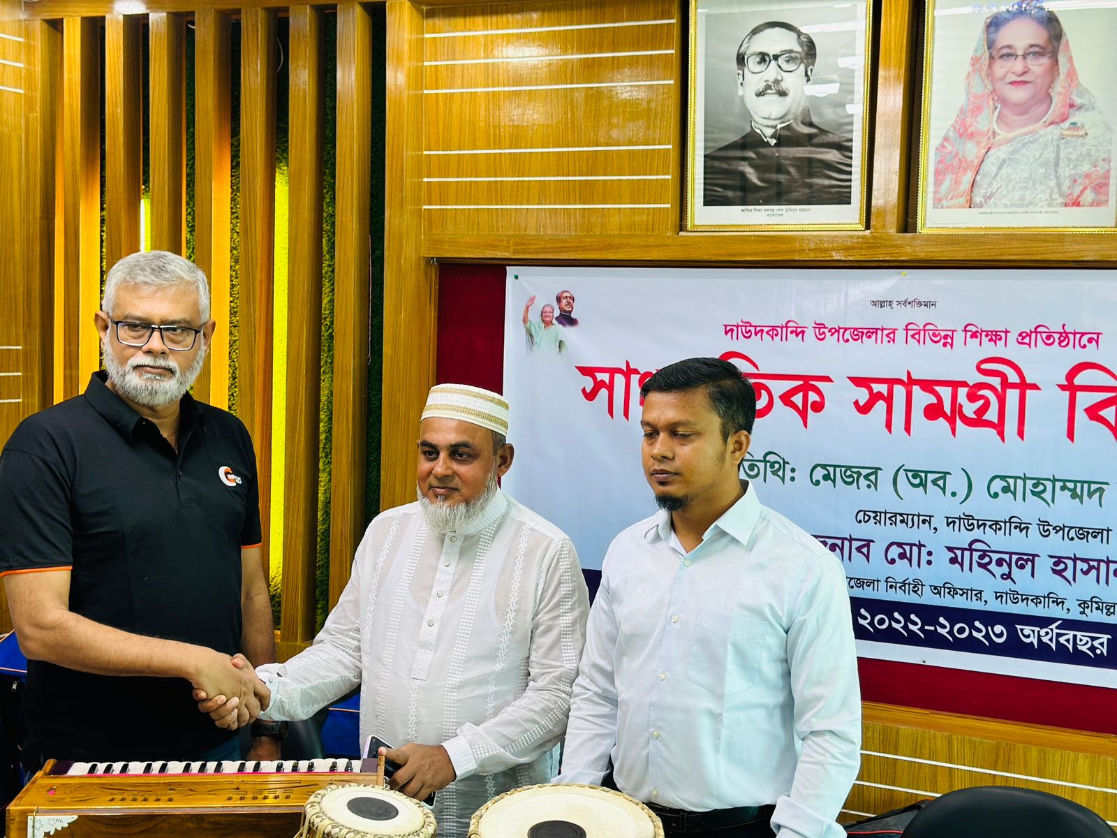 দাউদকান্দি উপজেলা পরিষদ চেয়ারম্যান মেজর মোহাম্মদ আলী (অব.), দাউদকান্দিতে ২০২৩-২৪ অর্থ বছরে রবি মৌসুমে কৃষি প্রনোদনার অংশ হিসেবে ফসলের আবাদ ও উৎপাদন বৃদ্ধির লক্ষ্যে কৃষি প্রনোদনা কর্মসূচির আওতায় ক্ষুদ্র ও প্রান্তিক কৃষকদের মধ্যে বিনামূল্যে বীজ ও রাসায়নিক সার বিতরণ এবং উপজেলার ৬টি শিক্ষা প্রতিষ্ঠানে সাংস্কৃতিক সামগ্রী হারমোনিয়াম ও তবলা বিতরণ করা হয়। বুধবার সকালে উপজেলা প্রশাসনের সভাকক্ষে বিদ্যালয়ের শিক্ষার্থীদের জন্য এসব সাংস্কৃতিক সামগ্রী বিতরণ করেন।