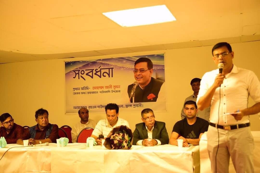 কুমিল্লা জেলার শ্রেষ্ঠ উপজেলা চেয়ারম্যান নির্বাচিত হওয়ায় ফ্রান্স এর রাজধানী প্যারিসে গণপ্রজাতন্ত্রী বাংলাদেশ সরকারের প্রতিরক্ষা মন্ত্রণালয় সম্পর্কিত সংসদীয় স্থায়ী কমিটির সভাপতি মেজর জেনারেল (অব:) মো: সুবিদ আলী ভূঁইয়া এমপি মহোদয়ের জেষ্ঠ্য সন্তান ও দাউদকান্দি উপজেলা পরিষদের চেয়ারম্যান মেজর মোহাম্মদ আলী (অব:) কে সংবর্ধনা দিয়েছে বৃহত্তর দাউদকান্দি উপজেলার ফ্রান্স প্রবাসীরা।
