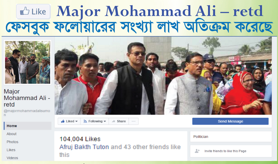 Major Mohammad Ali – retd ফেসবুক ফলোয়ারের সংখ্যা লাখ অতিক্রম করেছে